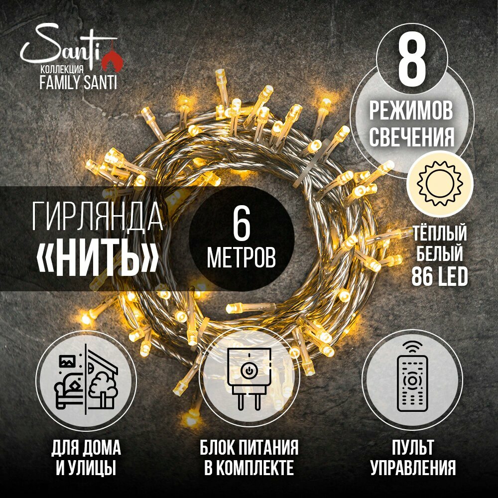 Купить Гирлянда Нить 86LED 6 м теплый белый свет, прозрачный провод IP44 ПВХ, 8 функций Family Santi с доставкой по всей России. Гирлянда Нить 86LED 6 м теплый белый свет, прозрачный провод IP44 ПВХ, 8 функций Family Santi: сравнение цен, характеристики, фото, актуальное наличие и цены.