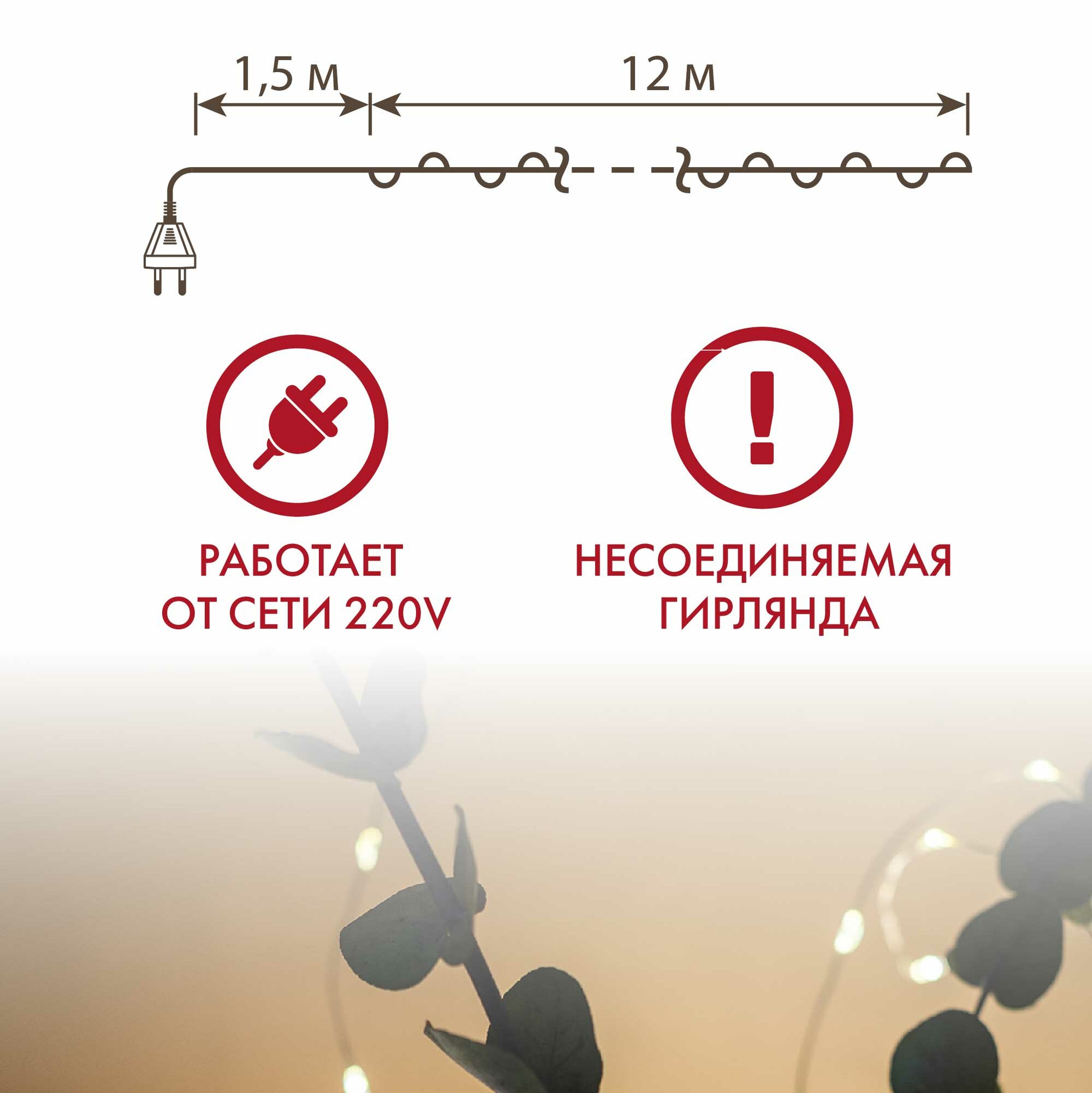 Гирлянда Нить роса новогодняя 12м, теплый белый+холодный мерцает.: сравнение цен, характеристики, фото, актуальное наличие и цены.