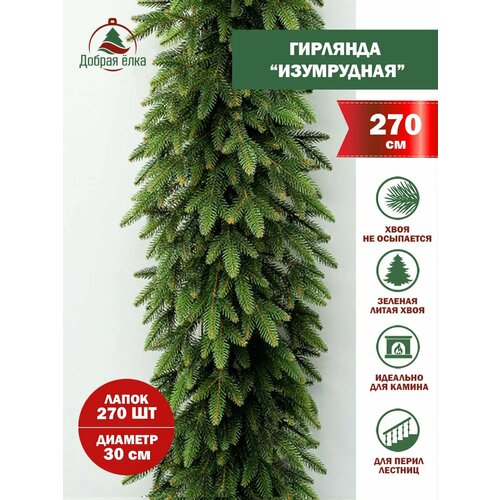 Купить Гирлянда новогодняя Добрая елка «Изумрудная», 100% литые ветки, 270см, для интерьера и улицы с доставкой по всей России.
