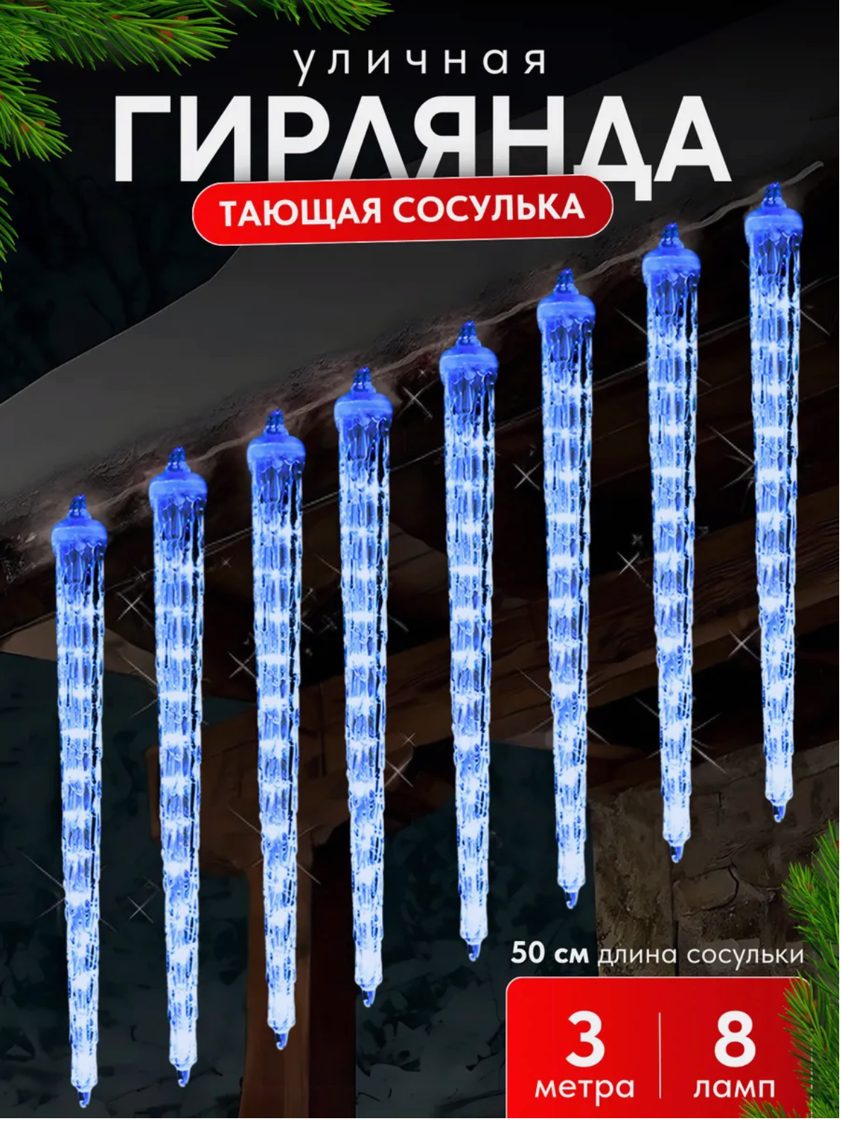 Купить Гирлянда новогодняя LED «Сосульки» уличная, 3 метра 8шт по 50 см, эффект тающего света / Синий с доставкой по всей России. Гирлянда новогодняя LED «Сосульки» уличная, 3 метра 8шт по 50 см, эффект тающего света / Синий: сравнение цен, характеристики, фото, актуальное наличие и цены.