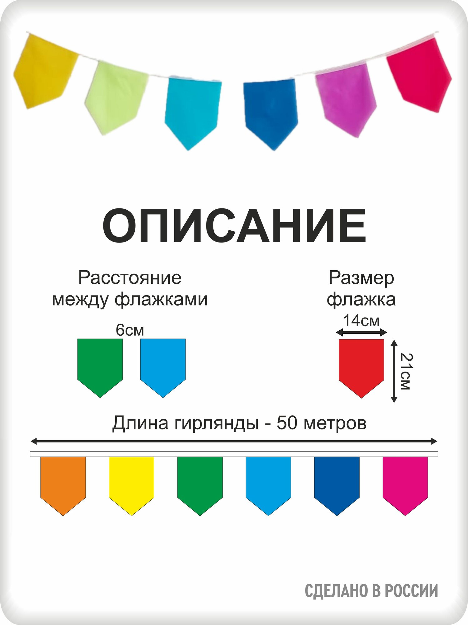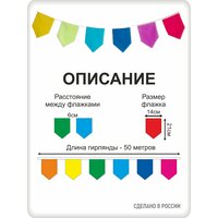 Гирлянда из флажков "Домик" длиной 50 метров и разноцветная, что позволяет использовать ее на различных мероприятиях и праздниках. Флажки гирлянды имеют размеры 14х21 см и расстояние между ними составляет 6 см. В гирлянде 250 флажков, вырезанных с помощью лазера, что гарантирует отсутствие осыпающихся краев. Флажки можно стирать и утюжить, что обеспечивает их долговечность и удобство использования. Гирлянда изготовлена из синтетической ткани (полиэстер), что делает ее устойчивой к влаге и дождю. Это позволяет использовать гирлянду на улице и в помещении, а также в случае намокания флажков, с ними ничего не случится. В упаковке находится одна гирлянда, что делает ее удобной для транспортировки и хранения. Гирлянда из флажков станет отличным украшением для помещения или улицы, а также для проведения фотосессий. Она подойдет для различных праздников и мероприятий, таких как выпускной в детском саду, школе, день рождения, гендер пати, День знаний, юбилей, свадьба, корпоратив, девичник и других.