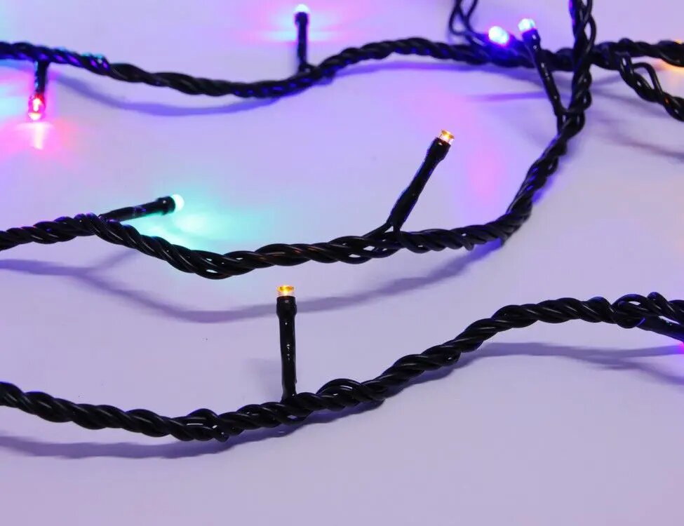 Эффектная электрогирлянда с крупными разноцветными светодиодными лампами может работать в восьми режимах светодинамики. Уникальность этих гирлянды в том, что их можно последовательно соединять до 5-ти гирлянд с сохранением функций светодинамики. Очень надежна в эксплуатации, поскольку имеет провод, выполненный из PVC улучшенного состава (с добавлением каучука), позволяющего использовать гирлянду при низких температурах и надежную влагозащищенность.
