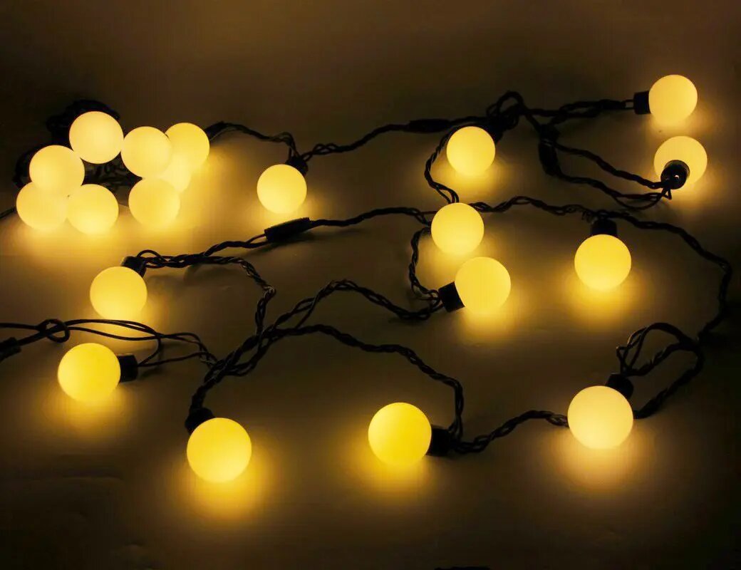 Светодиодная гирлянда Большие Мультишарики 40 мм 20 теплых белых LED ламп 5 м, черный каучук+ПВХ, соединяемая, IP54, Rich LED: сравнение цен, характеристики, фото, актуальное наличие и цены.