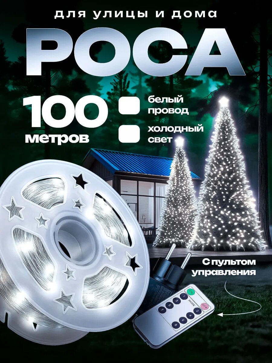 Купить Гирлянда «Роса», белый прозрачный провод, белый холодный свет, 100 метров с доставкой по всей России. Гирлянда «Роса», белый прозрачный провод, белый холодный свет, 100 метров: сравнение цен, характеристики, фото, актуальное наличие и цены.