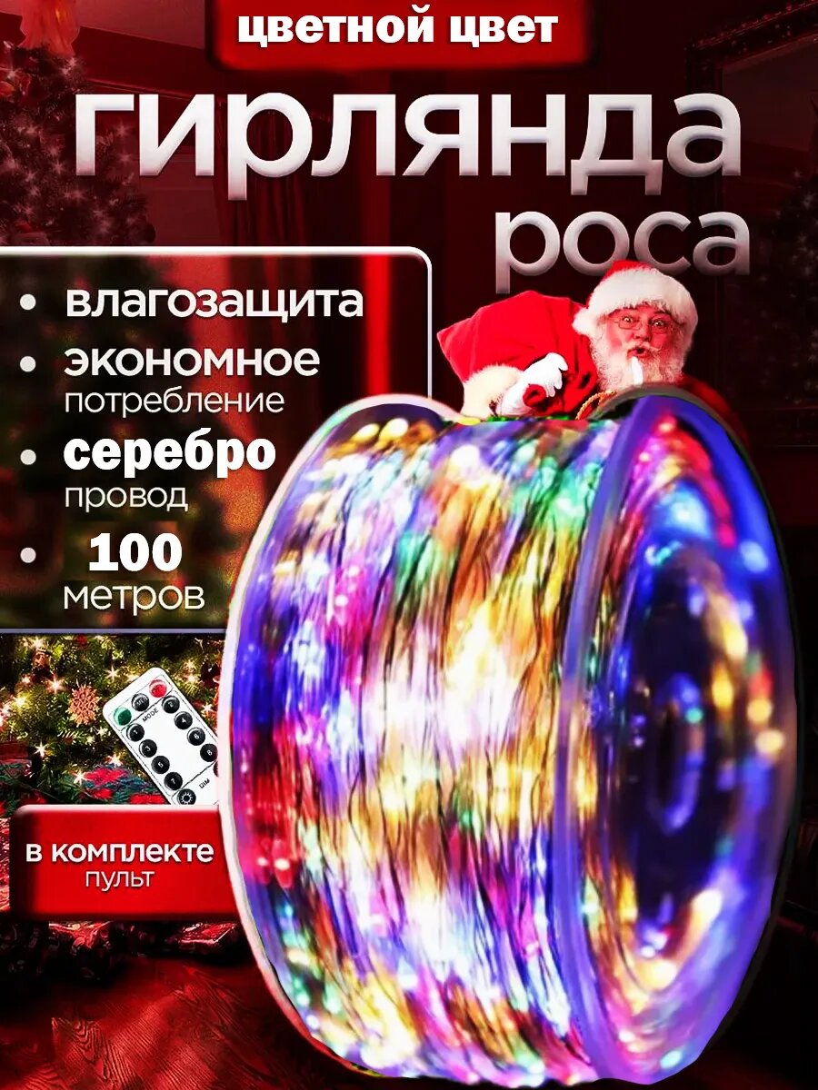 Гирлянда «Роса», белый прозрачный провод, RGB разноцветный свет, 100 метров: сравнение цен, характеристики, фото, актуальное наличие и цены.
