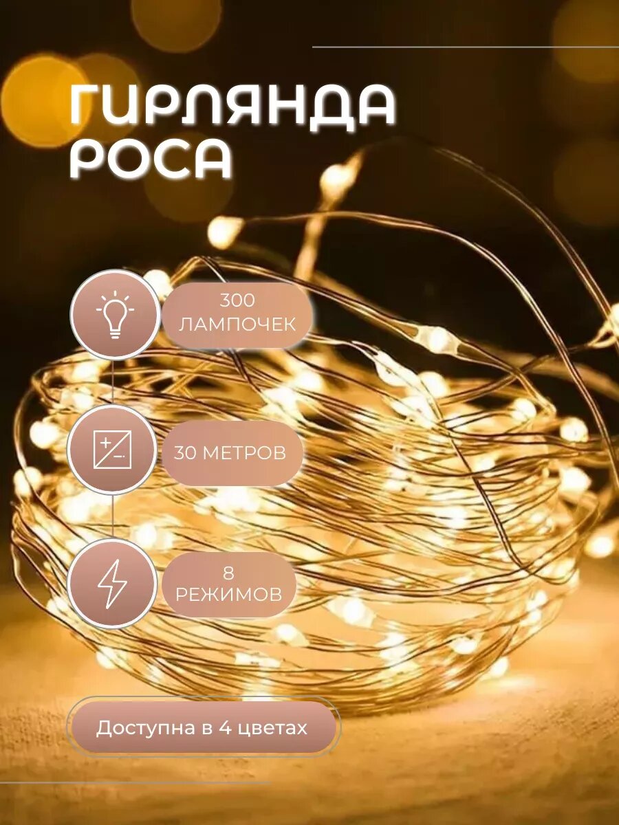 Купить Гирлянда «Роса», белый прозрачный провод, желтый тёплый свет, 30 метров с доставкой по всей России. Гирлянда «Роса», белый прозрачный провод, желтый тёплый свет, 30 метров: сравнение цен, характеристики, фото, актуальное наличие и цены.