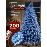 Купить Гирлянда «Роса» мишура Хвойная Лапа 200 метров синий с пультом ДУ, зеленый провод с доставкой по всей России.