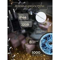 6. Идеальный выбор для праздничного освещения Холодный белый свет и множество светодиодов на зелёном проводе создают волшебную атмосферу, не требуя дополнительных украшений. Гирлянда прекрасно смотрится на новогодней ёлке, подчёркивая её естественную красоту.