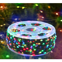 Гирлянда Роса в катушке 50 метров, зеленый провод, разноцветный свет