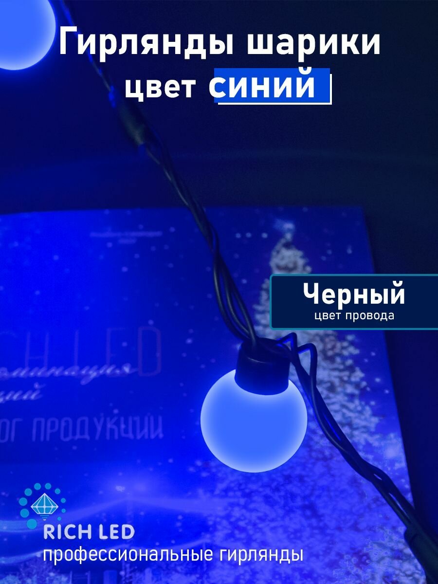 Купить Гирлянда Шарики, 5 м, IP65, синий свет, черный провод, от сети 220в. с доставкой по всей России. Гирлянда Шарики, 5 м, IP65, синий свет, черный провод, от сети 220в.: сравнение цен, характеристики, фото, актуальное наличие и цены.