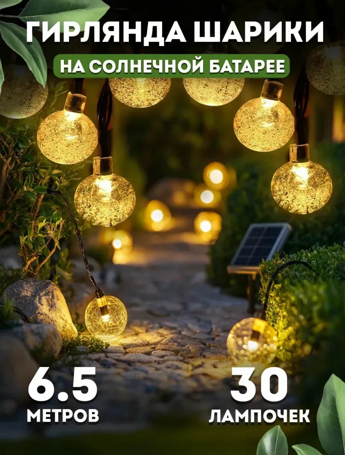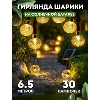 Купить Гирлянда Шарики 6.5 метров / Уличная гирлянда на солнечной батарее / 30 светодиодов / Теплый белый свет с доставкой по всей России.