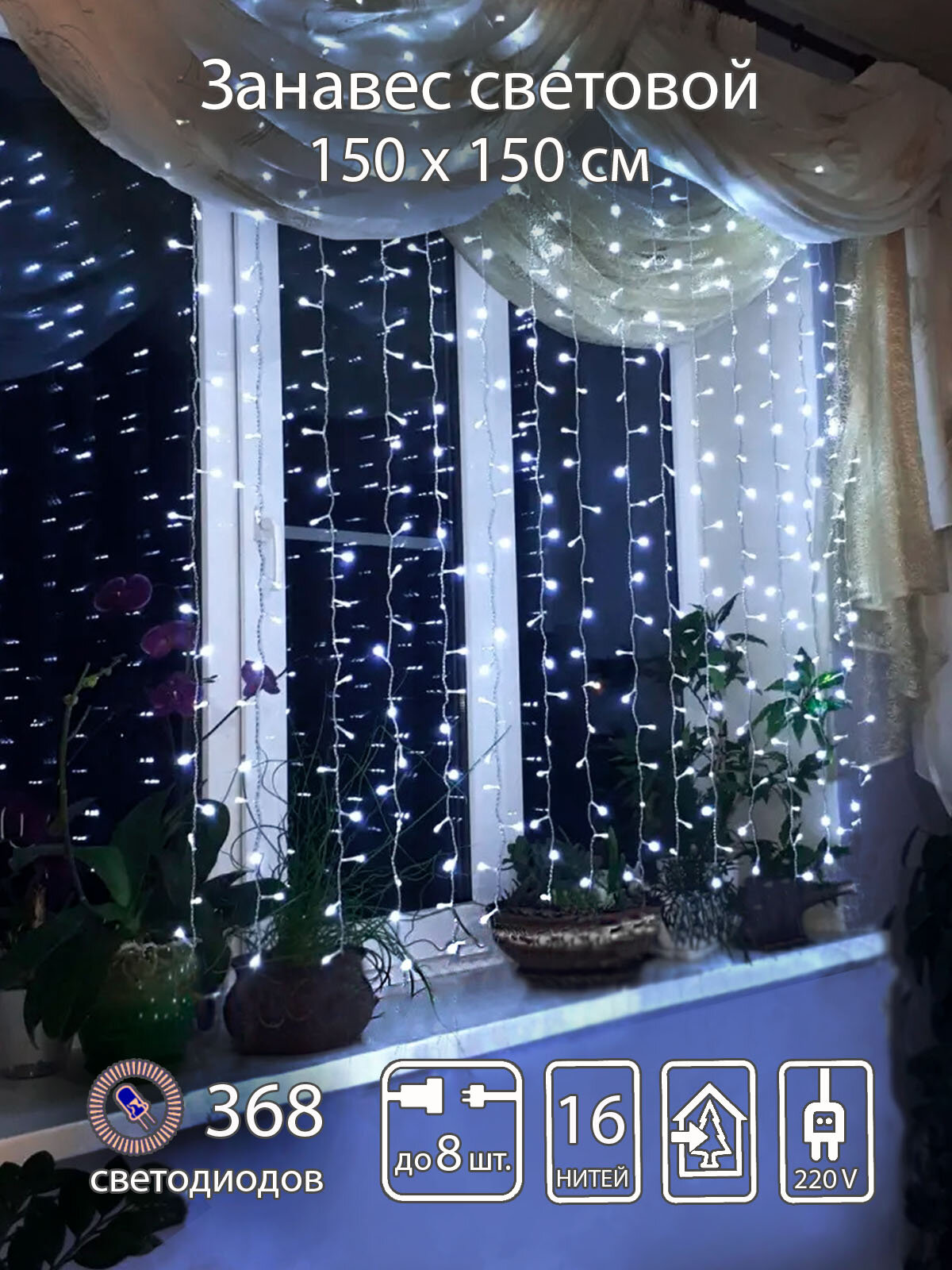 Купить Гирлянда SHLights Световой занавес, 368 LED, 1,5х1,5м, для помещений, соединяемая до 8 гирлянд, белый (LDCL368-W-E) с доставкой по всей России.