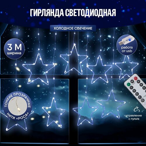 Купить Гирлянда штора светодиодная «Звездочка» 3*1 белая с доставкой по всей России. Гирлянда штора светодиодная «Звездочка» 3*1 белая: сравнение цен, характеристики, фото, актуальное наличие и цены.