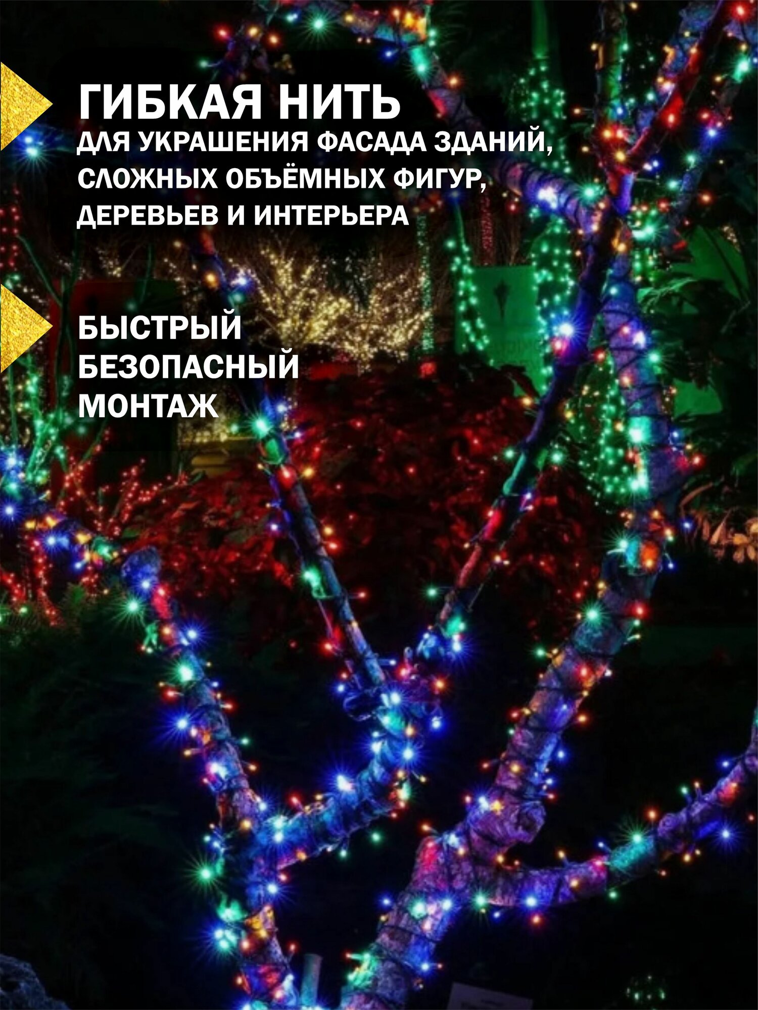 Эта гирлянда не только украсит ваш дом или сад, но и добавит волшебства в любое мероприятие — от новогодних праздников до свадеб и вечеринок. Мерцающий эффект создает динамичное освещение, которое привлекает внимание и добавляет незабываемую атмосферу. Легкая установка подходит для использования как на улице, так и внутри помещения: вы легко повесите ее на ветви деревьев, перила, стены или используете как задний план для фотосессий.