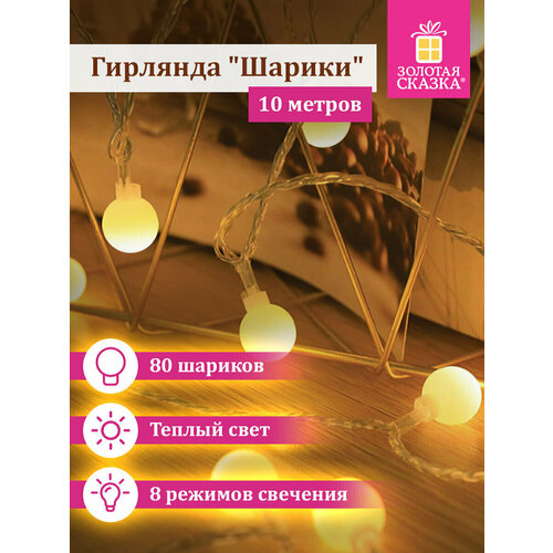 Купить Гирлянда светодиодная нить Шарики интерьерная электрическая от сети, для дома новогодняя 10м, 80LED, теплый белый, контроллер, 220V Золотая Сказка, 591349 с доставкой по всей России. Гирлянда светодиодная нить Шарики интерьерная электрическая от сети, для дома новогодняя 10м, 80LED, теплый белый, контроллер, 220V Золотая Сказка, 591349: сравнение цен, характеристики, фото, актуальное наличие и цены.
