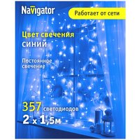 Гирлянда штора от Navigator — украшение, которое превратит Ваш дом в сказку! Уникальный элемент декора подарит атмосферу праздника, радости и волшебства. Новогодняя гирлянда идеально подходит для оформления окна гостиной, детской или кухни. Размер гирлянды 2 х 1.5 метра (+ 1, 5 метра провод питания). Специальная конструкция позволяет соединять в линию до 5 гирлянд без каких-либо специальных приспособлений. Расстояние между нитями 8 см. Цвет свечения новогодней гирлянды на окно – серебристый синий. Гирлянда занавес состоит из 357 ярких лампочек - светодиодов. Гирлянда штора на окно имеет 1 режим свечения: постоянный. Новогодняя гирлянда на окно - идеальный вариант для украшения интерьера не только на Новый год или Рождество, но и для оформления свадебного торжества, вечеринки на день рождения, юбилей или любого другого праздника. Такая светодиодная гирлянда отлично подойдет для создания фотозоны, и может использоваться для проведения новогодней фотосессии. Электрогирлянда штора работает от сети. Если длины провода недостаточно, рекомендуем использовать удлинитель для гирлянд Navigator.