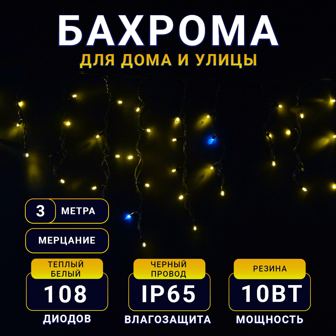 Гирлянда TEAMPROF Бахрома 3×0.6 м, флэш, теплый белый, черная резина TPF-i3х0.6F-RB/WW: сравнение цен, характеристики, фото, актуальное наличие и цены.