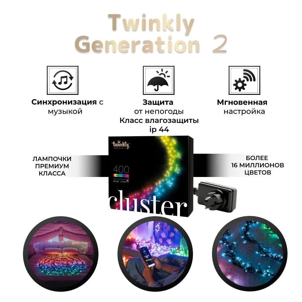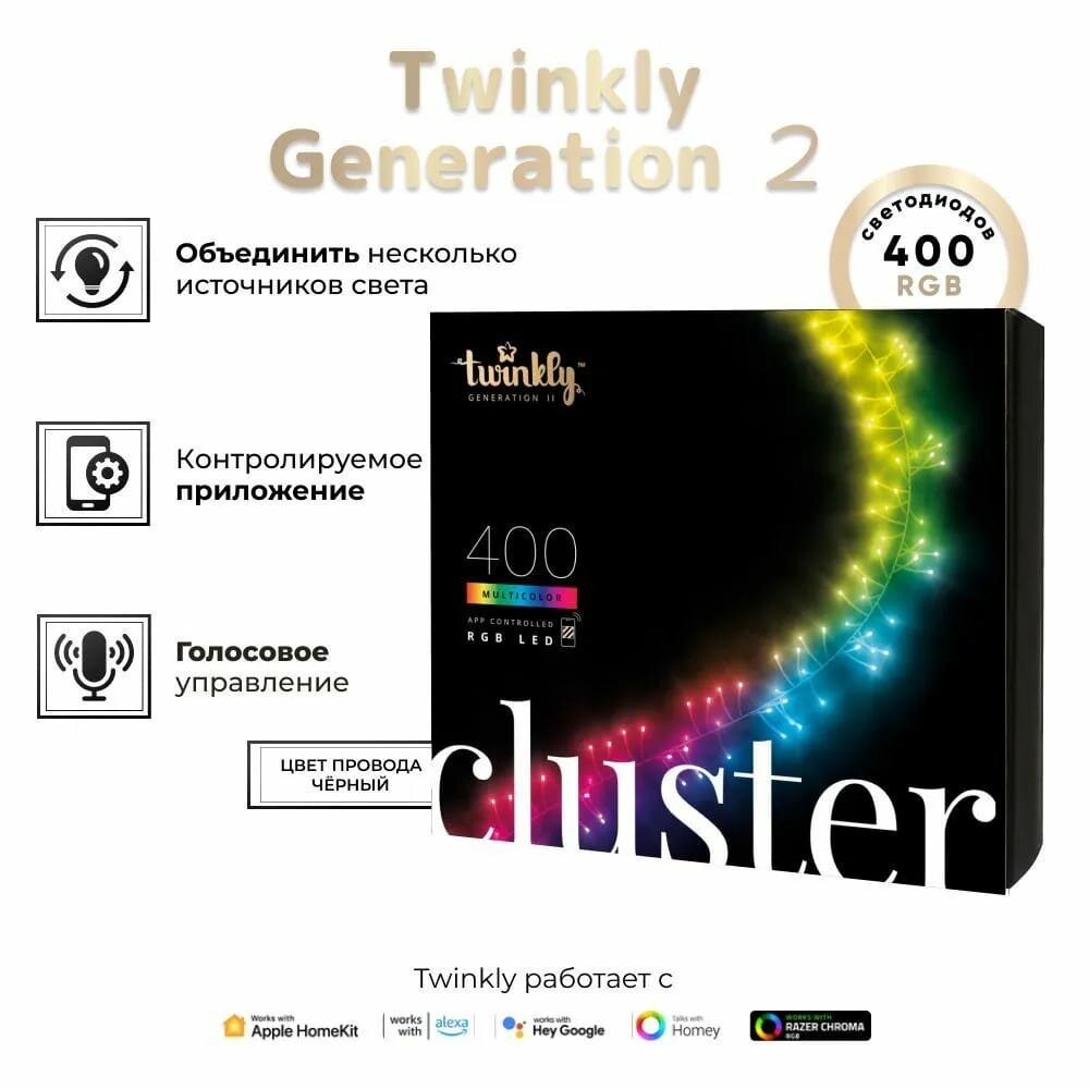 Гирлянда twinkly нить Cluster, 6 м, 400 ламп, разноцветный|черный провод: сравнение цен, характеристики, фото, актуальное наличие и цены.