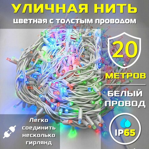 Купить Гирлянда уличная 20м ip65 с толстым проводом (Белая/Цветная) с доставкой по всей России. Гирлянда уличная 20м ip65 с толстым проводом (Белая/Цветная): сравнение цен, характеристики, фото, актуальное наличие и цены.