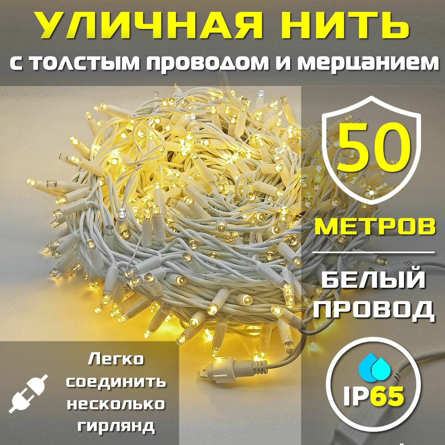 Купить Гирлянда уличная 50м ip65 с мерцанием и толстым проводом (Белая/Теплая) с доставкой по всей России. Гирлянда уличная 50м ip65 с мерцанием и толстым проводом (Белая/Теплая): сравнение цен, характеристики, фото, актуальное наличие и цены.