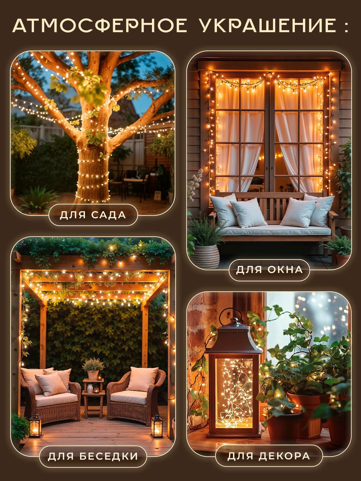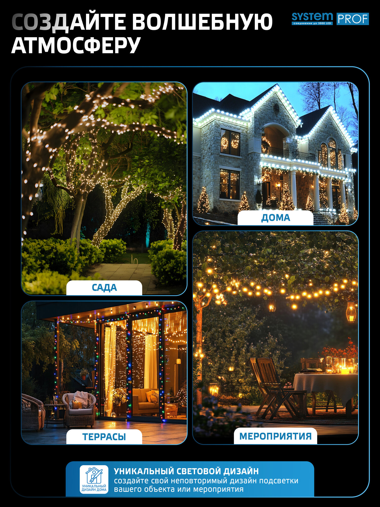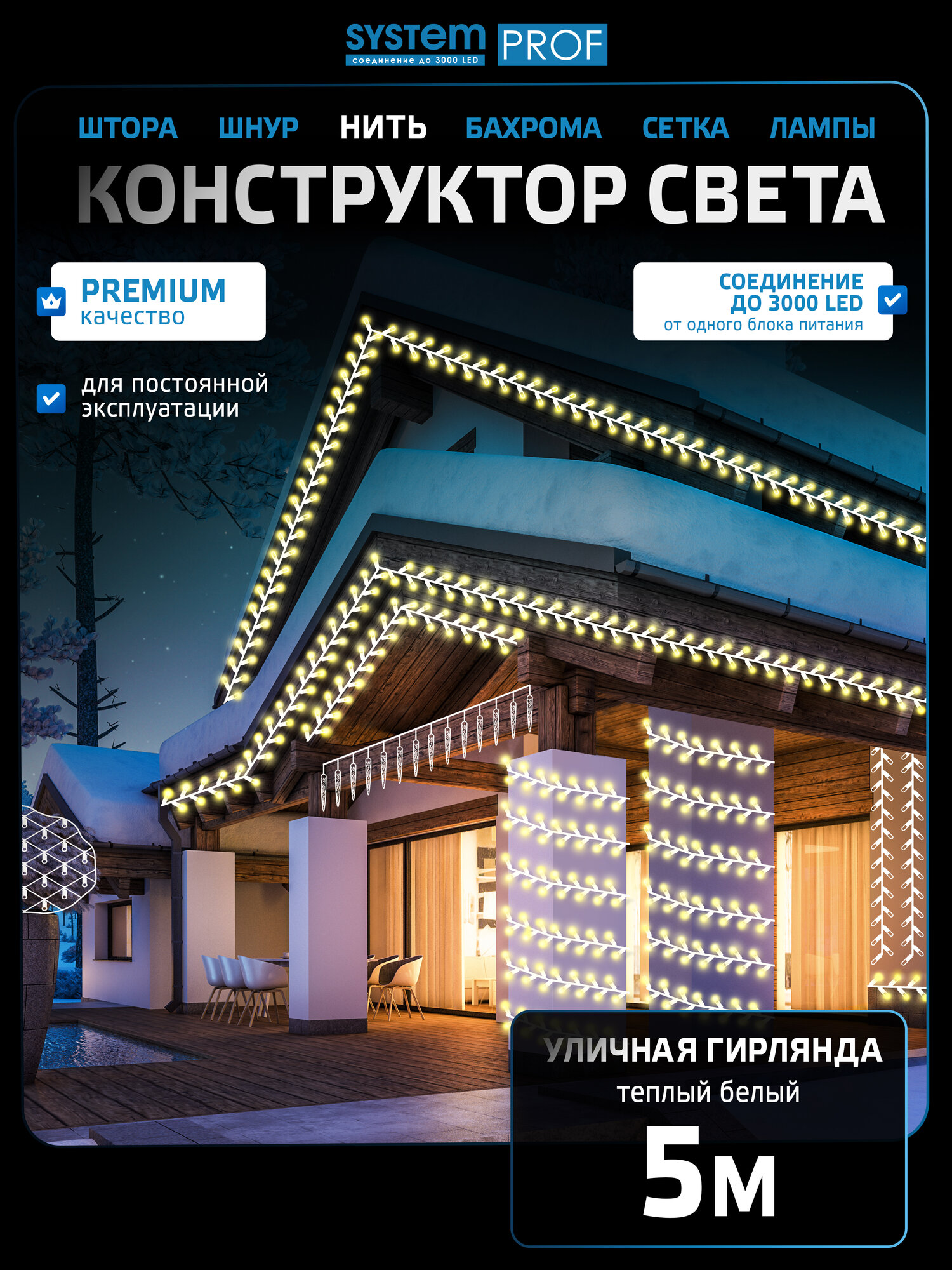 Гирлянда уличная 5м. Нить ,50 сверхъярких теплых белых LED, С блоком питания, снаружи/внутри.: сравнение цен, характеристики, фото, актуальное наличие и цены.