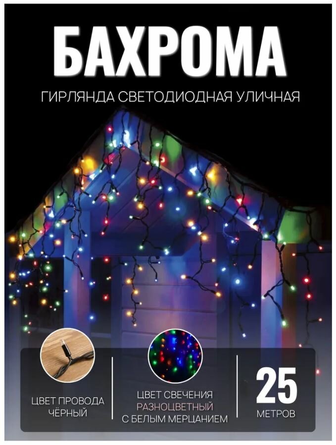 Гирлянда уличная бахрома 25м чёрный провод / Гирлянда светодиодная, разноцветный свет: сравнение цен, характеристики, фото, актуальное наличие и цены.