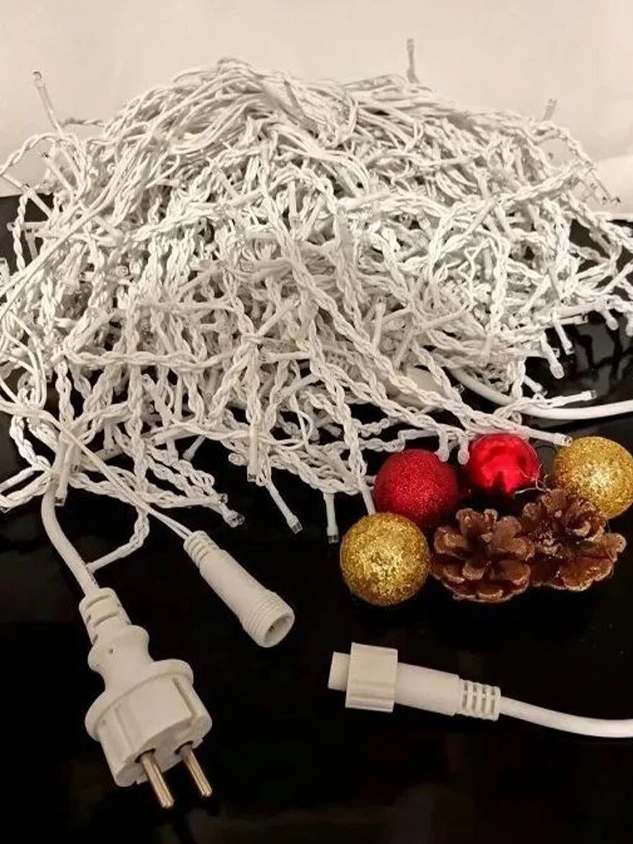 Гирлянда уличная Бахрома 50м белая Новогоднее украшение для дома, декор