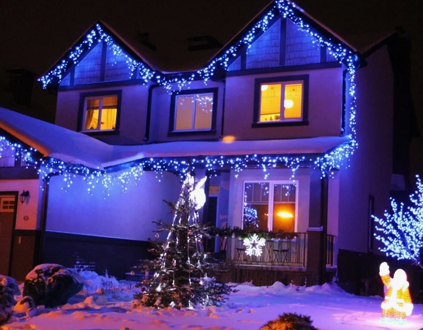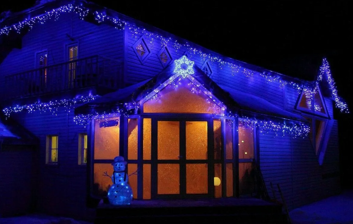 Купить Гирлянда уличная Бахрома 50м / Гирлянда светодиодная, питание от сети 220В, черный провод, синий свет с доставкой по всей России.
