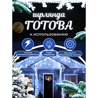 Купить Гирлянда уличная Бахрома, Светодиодная гирлянда Бахрома, Электрогирлянда Бахрома на Новый год, 3 метра, Холодный белый с доставкой по всей России.