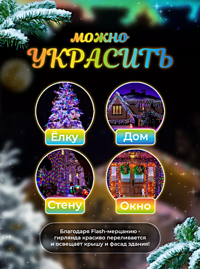 Гирлянда уличная Бахрома, Светодиодная гирлянда Бахрома, Электрогирлянда Бахрома на Новый год, 3 метра, Разноцветный: сравнение цен, характеристики, фото, актуальное наличие и цены.