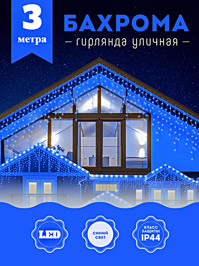 Гирлянда уличная Бахрома, Светодиодная гирлянда Бахрома, Электрогирлянда Бахрома на Новый год, 3 метра, Синий: сравнение цен, характеристики, фото, актуальное наличие и цены.