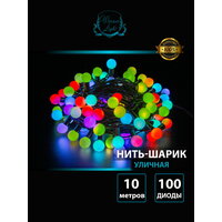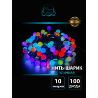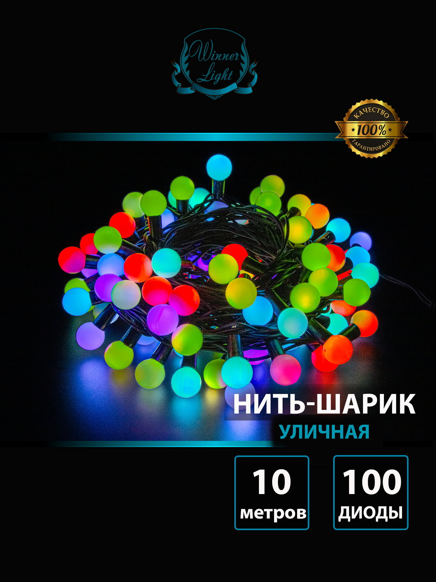 Гирлянда уличная cветодиодная, Нить-Шарик d 2,2см, цвет Разноцветный 100 LED, 10м, провод чёрный каучук, Winner light: сравнение цен, характеристики, фото, актуальное наличие и цены.