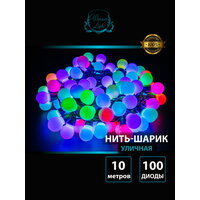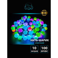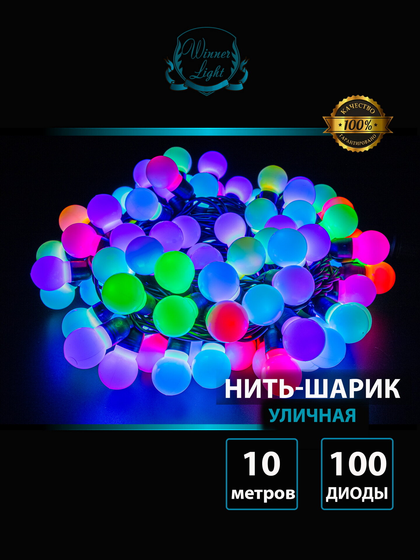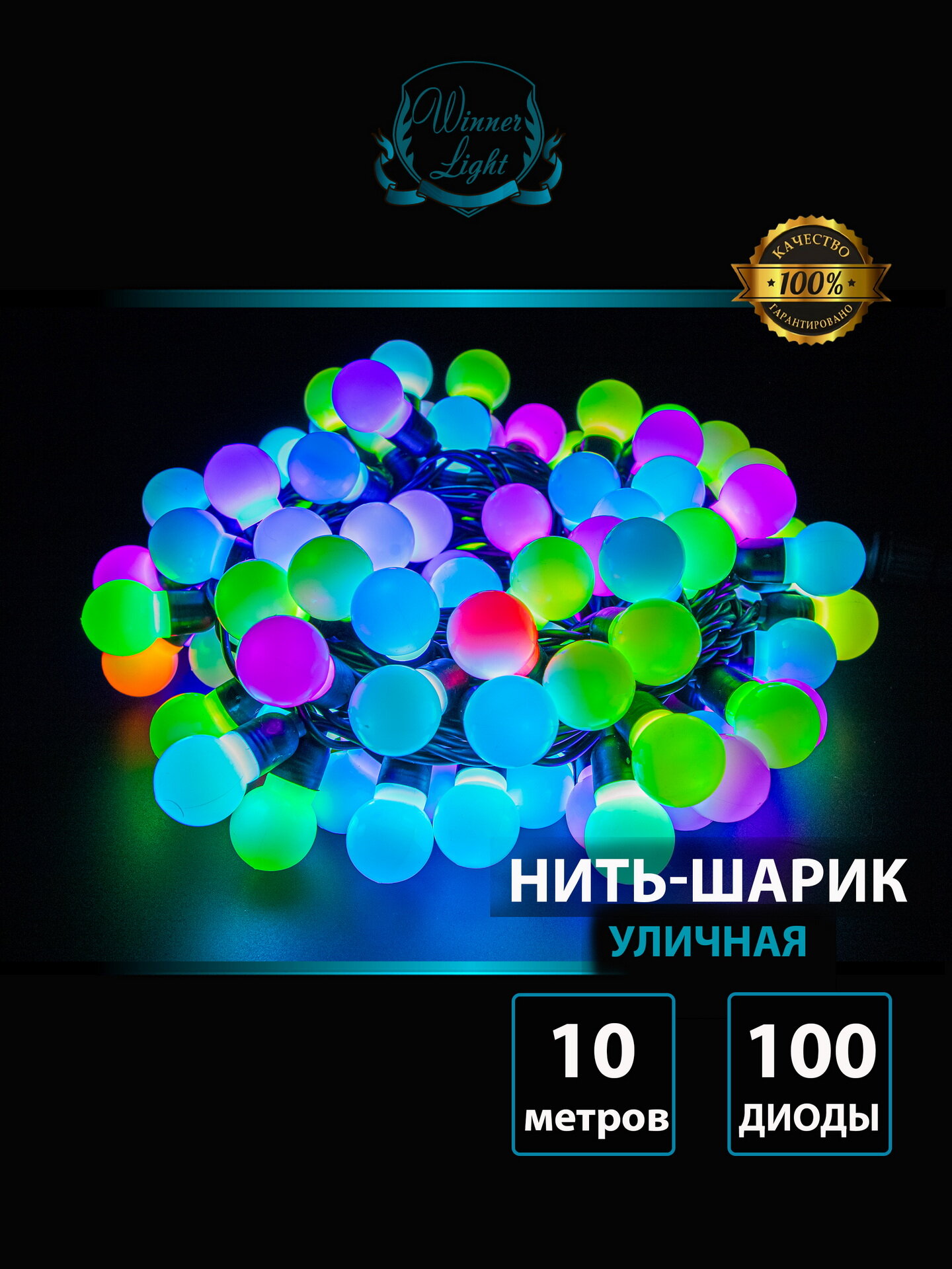 Гирлянда уличная cветодиодная, Нить-Шарик d 3см, цвет Разноцветный 100 LED, 10м, провод чёрный каучук, Winner light: сравнение цен, характеристики, фото, актуальное наличие и цены.