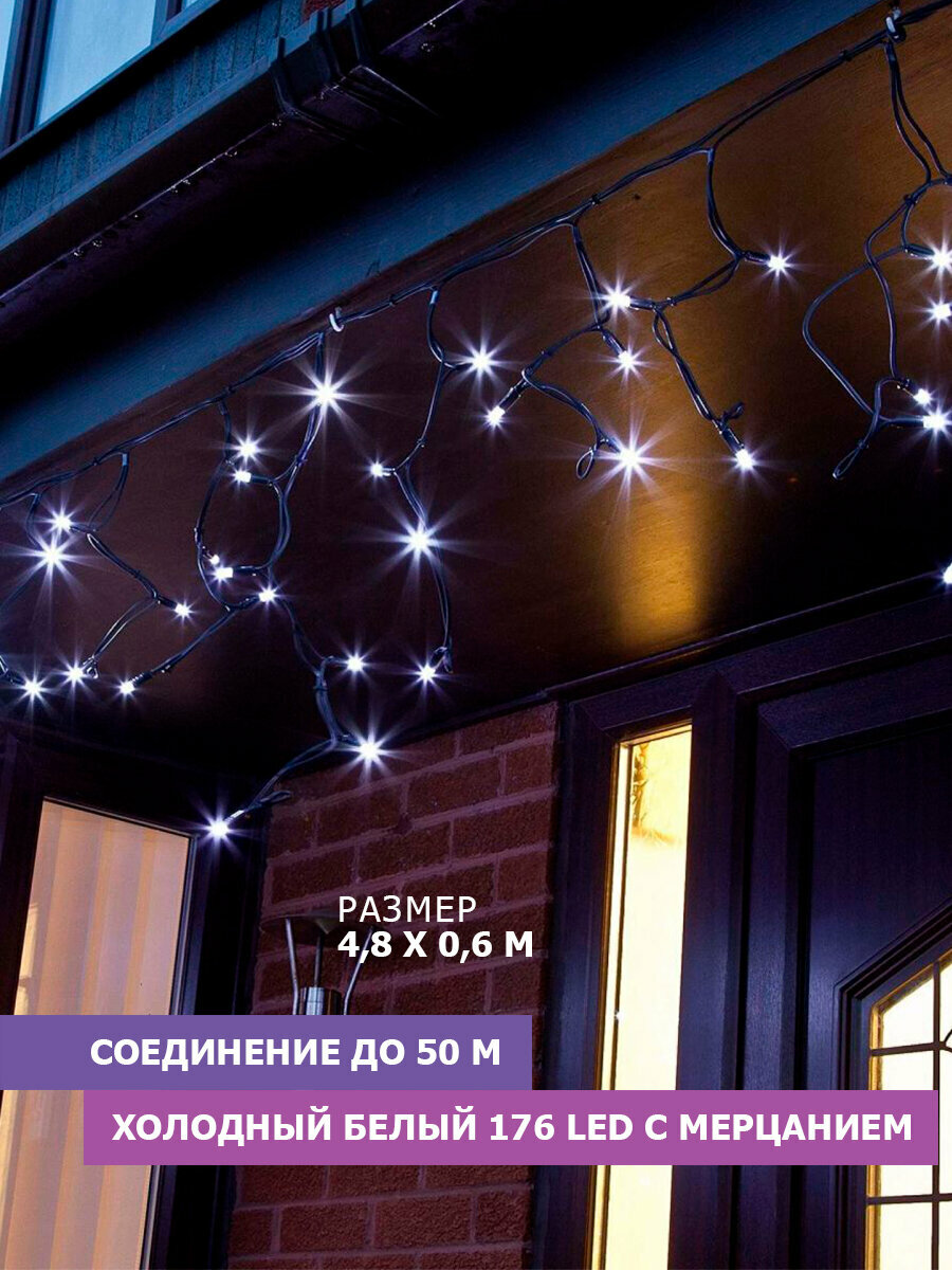Купить Гирлянда уличная NEON-NIGHT Бахрома 4,8х0,6 м, 176 LED, белое свечение, эффект мерцания, черный провод, IP65 с доставкой по всей России. Гирлянда уличная NEON-NIGHT Бахрома 4,8х0,6 м, 176 LED, белое свечение, эффект мерцания, черный провод, IP65: сравнение цен, характеристики, фото, актуальное наличие и цены.