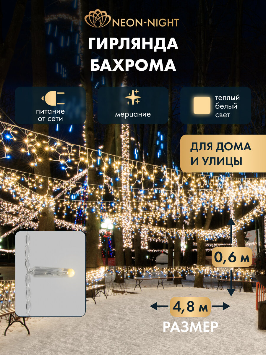 Купить Гирлянда уличная NEON-NIGHT Бахрома 4,8х0,6 м, 176 LED, тепло-белое свечение, эффект мерцания, IP65 с доставкой по всей России. Гирлянда уличная NEON-NIGHT Бахрома 4,8х0,6 м, 176 LED, тепло-белое свечение, эффект мерцания, IP65: сравнение цен, характеристики, фото, актуальное наличие и цены.