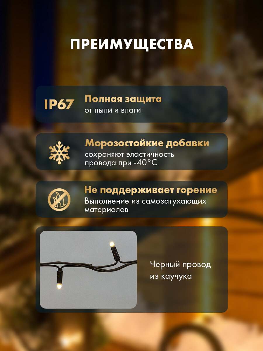 Купить Гирлянда уличная NEON-NIGHT Нить 10 м (2 модуля по 5 м), 200 LED, тепло-белое свечение, каучук, IP67 с доставкой по всей России. Гирлянда уличная NEON-NIGHT Нить 10 м (2 модуля по 5 м), 200 LED, тепло-белое свечение, каучук, IP67: сравнение цен, характеристики, фото, актуальное наличие и цены.