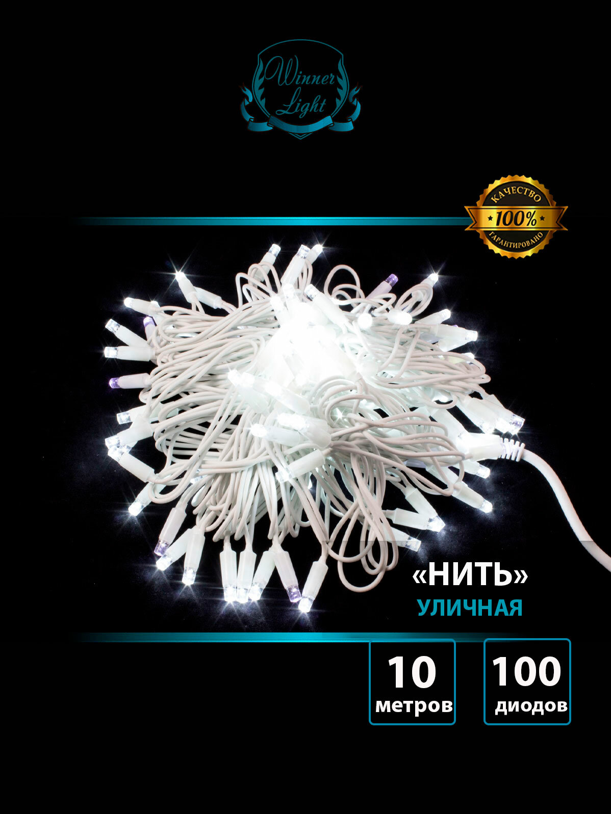 Гирлянда уличная нить 10 м, цвет Белый, 100 LED, белый каучуковый провод, мерцающий диод, Winner light: сравнение цен, характеристики, фото, актуальное наличие и цены.