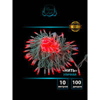Купить Гирлянда уличная нить 10 м, цвет Красный, 100 LED, белый каучуковый провод, мерцающий диод, Winner light с доставкой по всей России.