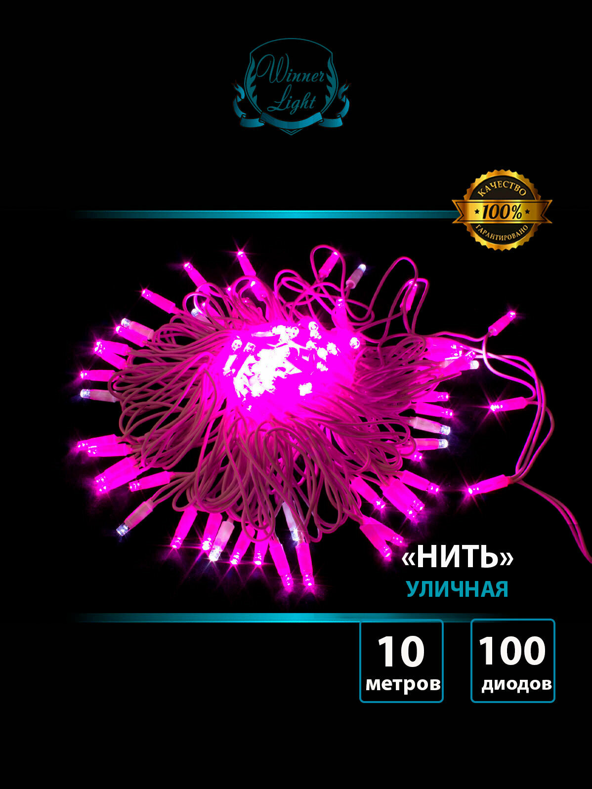Гирлянда уличная нить 10 м, цвет Розовый, 100 LED, белый каучуковый провод, мерцающий диод, Winner light: сравнение цен, характеристики, фото, актуальное наличие и цены.