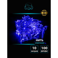 Купить Гирлянда уличная нить 10 м, цвет Синий, 100 LED, белый каучуковый провод, мерцающий диод, Winner light с доставкой по всей России.