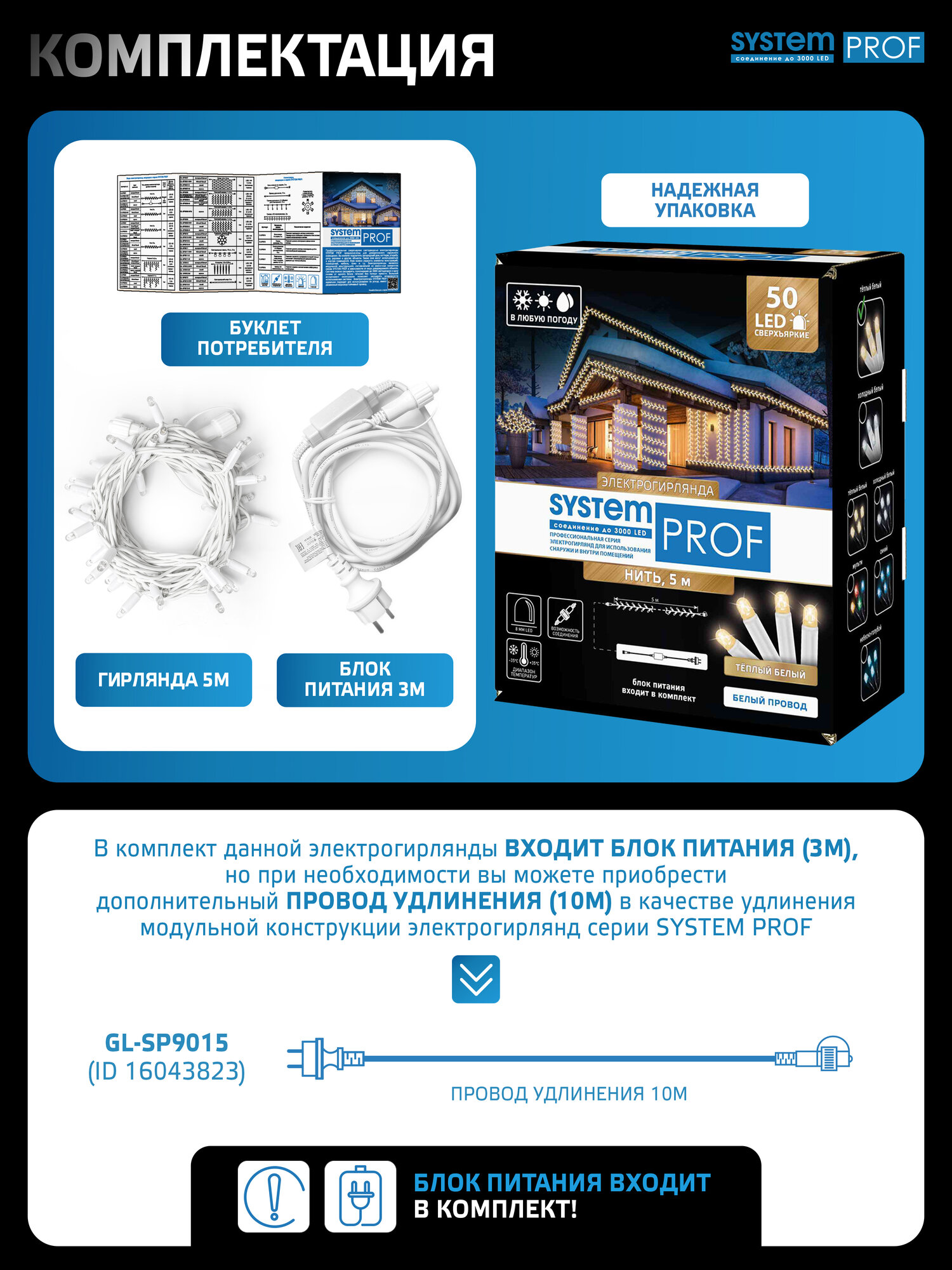 Гирлянда уличная нить System Prof, 5 м, теплый белый, с блоком питания в комплекте.: сравнение цен, характеристики, фото, актуальное наличие и цены.