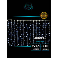 Купить Гирлянда уличная штора 2х1,5 метров (занавес) на дом с мерцанием Белая от сети 210 ламп светодиод, Winner light с доставкой по всей России.