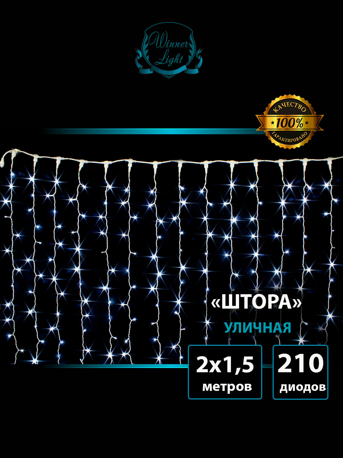 Гирлянда уличная штора 2х1,5 метров (занавес) на дом с мерцанием Белая от сети 210 ламп светодиод, Winner light: сравнение цен, характеристики, фото, актуальное наличие и цены.
