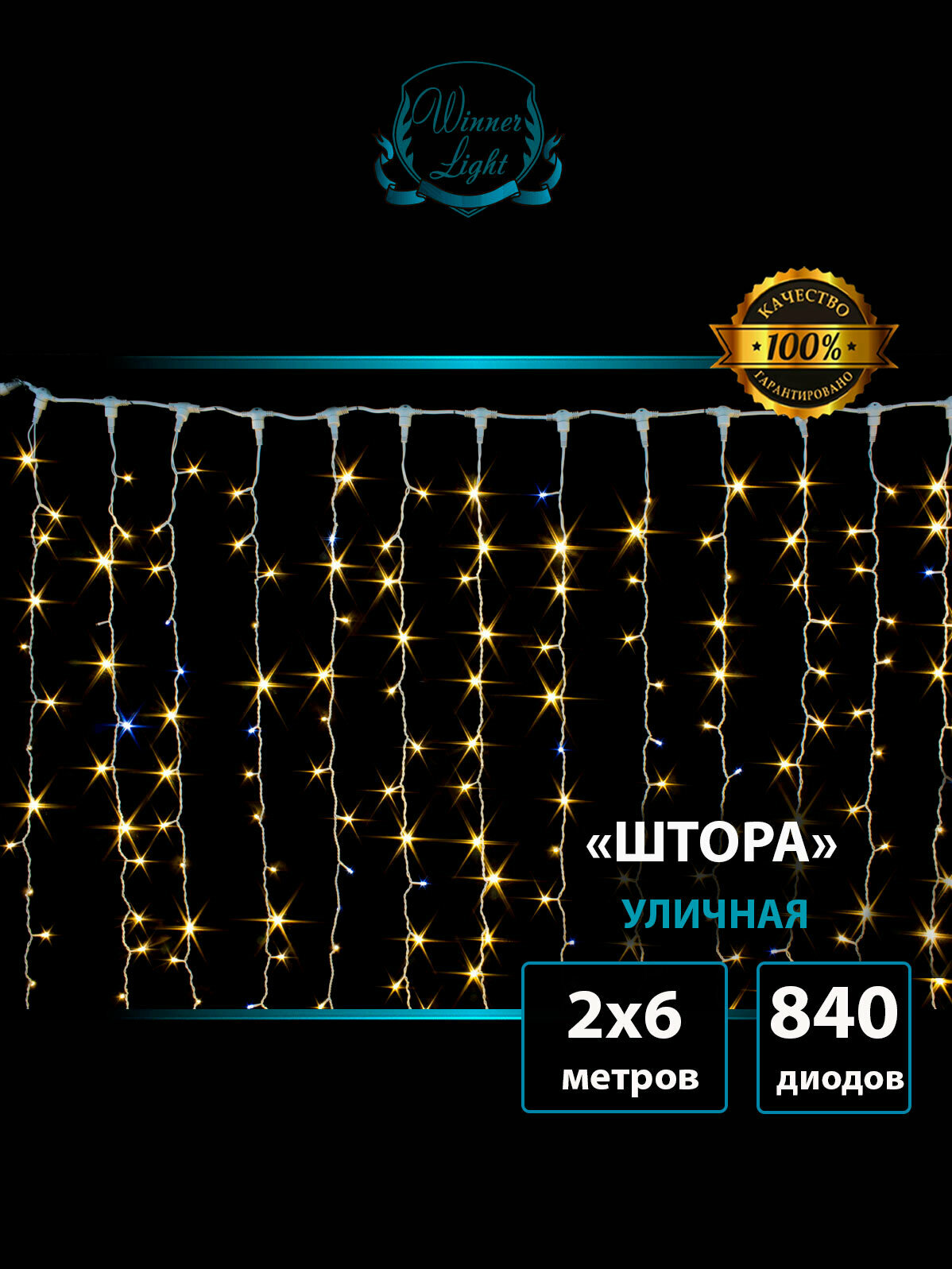 Гирлянда уличная штора 2х6 метров для террасы Теплый свет с мерцанием от сети 840 ламп новогодняя светодиод Winner light: сравнение цен, характеристики, фото, актуальное наличие и цены.