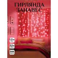 Купить Гирлянда «Занавес» SNOWHOUSE, 544 свеодиодов, 220В, 1,5×2,2 м, 1 режим, IP20, красный с доставкой по всей России.