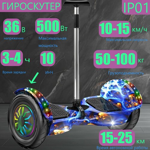 Гироскутер, Диаметр: 10 дюймов, Тёмно-синий, Съемный подлокотник