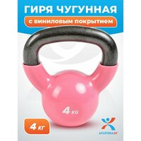 Купить Гиря 4 кг чугунная с виниловым покрытием для фитнеса и спорта, розовая, обрезиненная с доставкой по всей России.