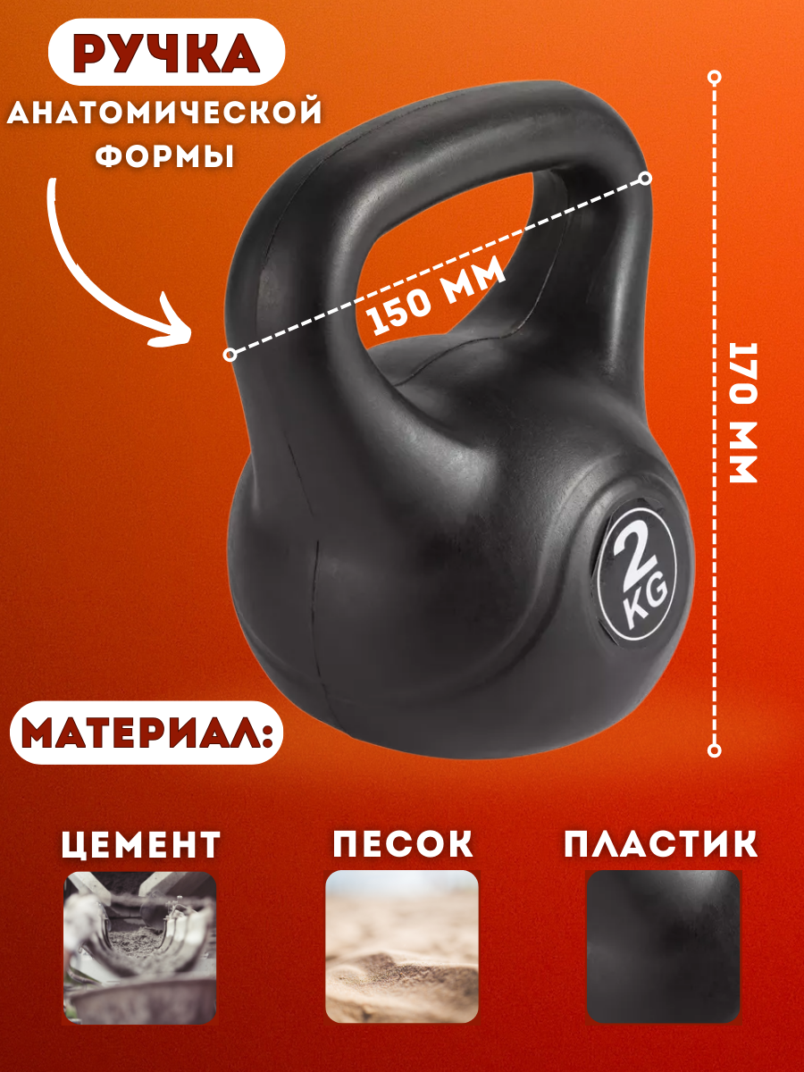 Купить Гиря пластиковая 2 кг Черная с доставкой по всей России.