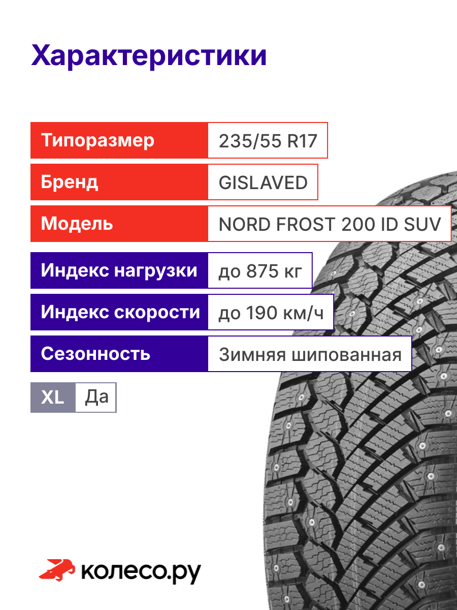 Шины зимние Гиславед NORD FROST 200 ID SUV 235/55 R17 103T XL шипованная зимняя резина: сравнение цен, характеристики, фото, актуальное наличие и цены.