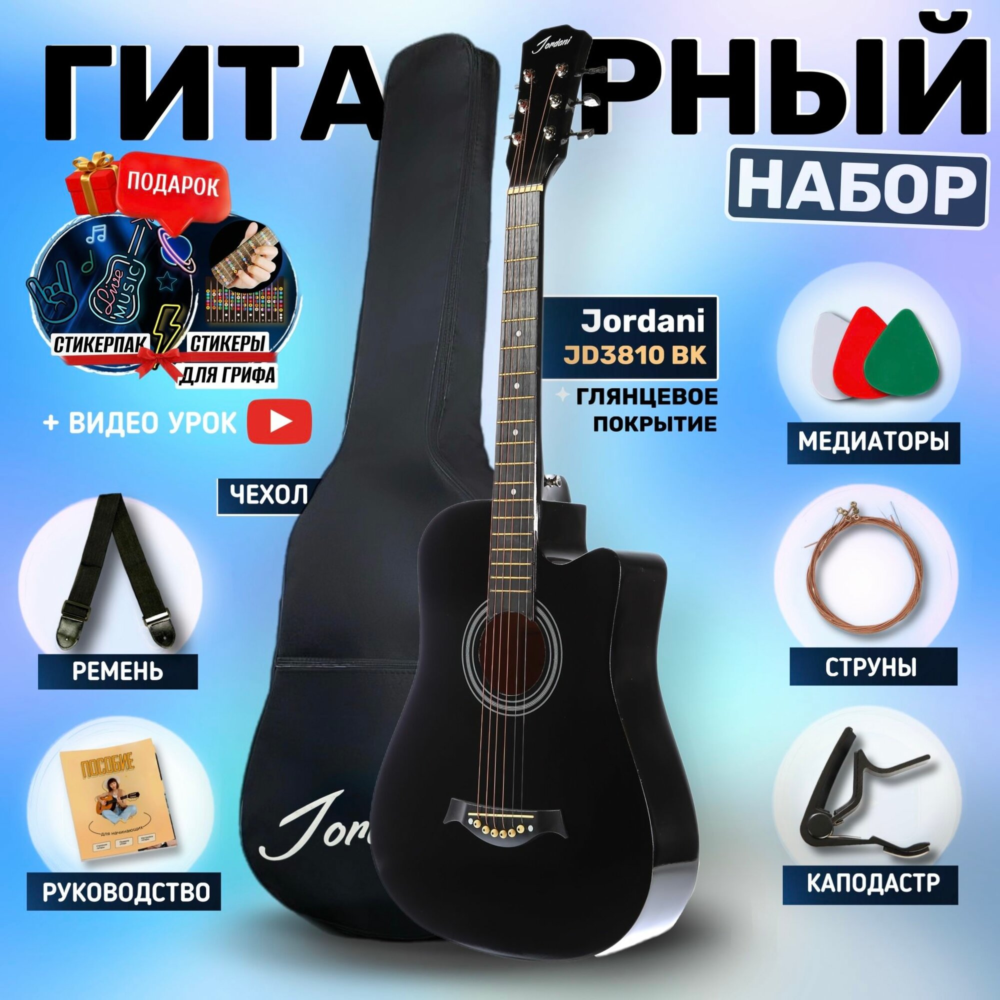 Акустическая гитара Jordani JD3810 BK: набор начинающего гитариста